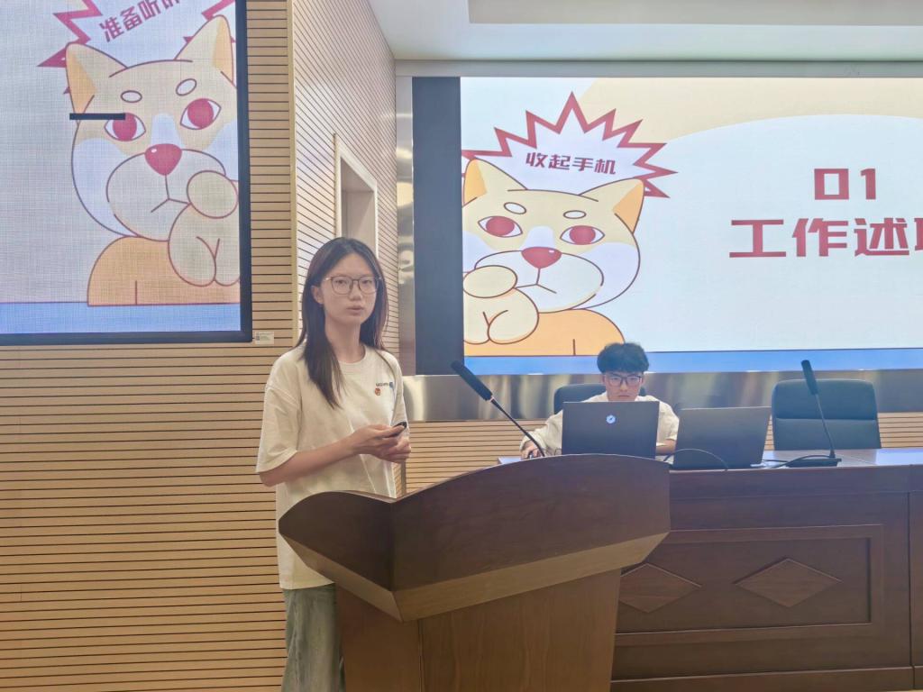 2025 年 6 月 15 日,我院团委、学生会工作总结暨动员大会于理科楼 A200 召开。本次会议由办公室柏安骐主持,团委书记刘晓丹、团委副书记马欣宇、主席团成员单思敏、王雪芹、朱超以及各部门负责人和志愿者团成员出席本次会议。