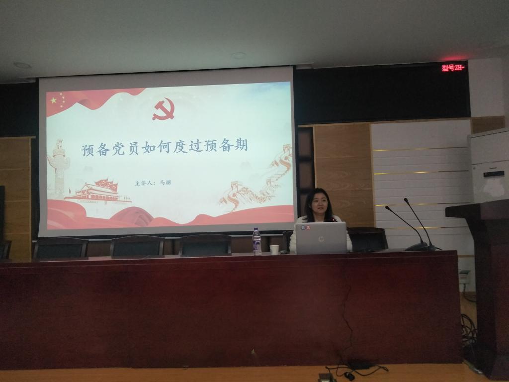 第一次专题党课《预备党员如何度过预备期》,由数统学院党委副书记马丽主讲。马老师从“为什么接收新党员要有预备期、党员的教育管理、预备党员在预备期间需要注意的几个问题、预备党员转正的程序”等四个方面出发,系统而详实地向在座学员介绍了党员预备期的必要性和重要性。她指出,预备党员在预备期要端正态度、努力学习,积极参与组织生活并经常向党组织汇报自己的思想和学习工作情况。