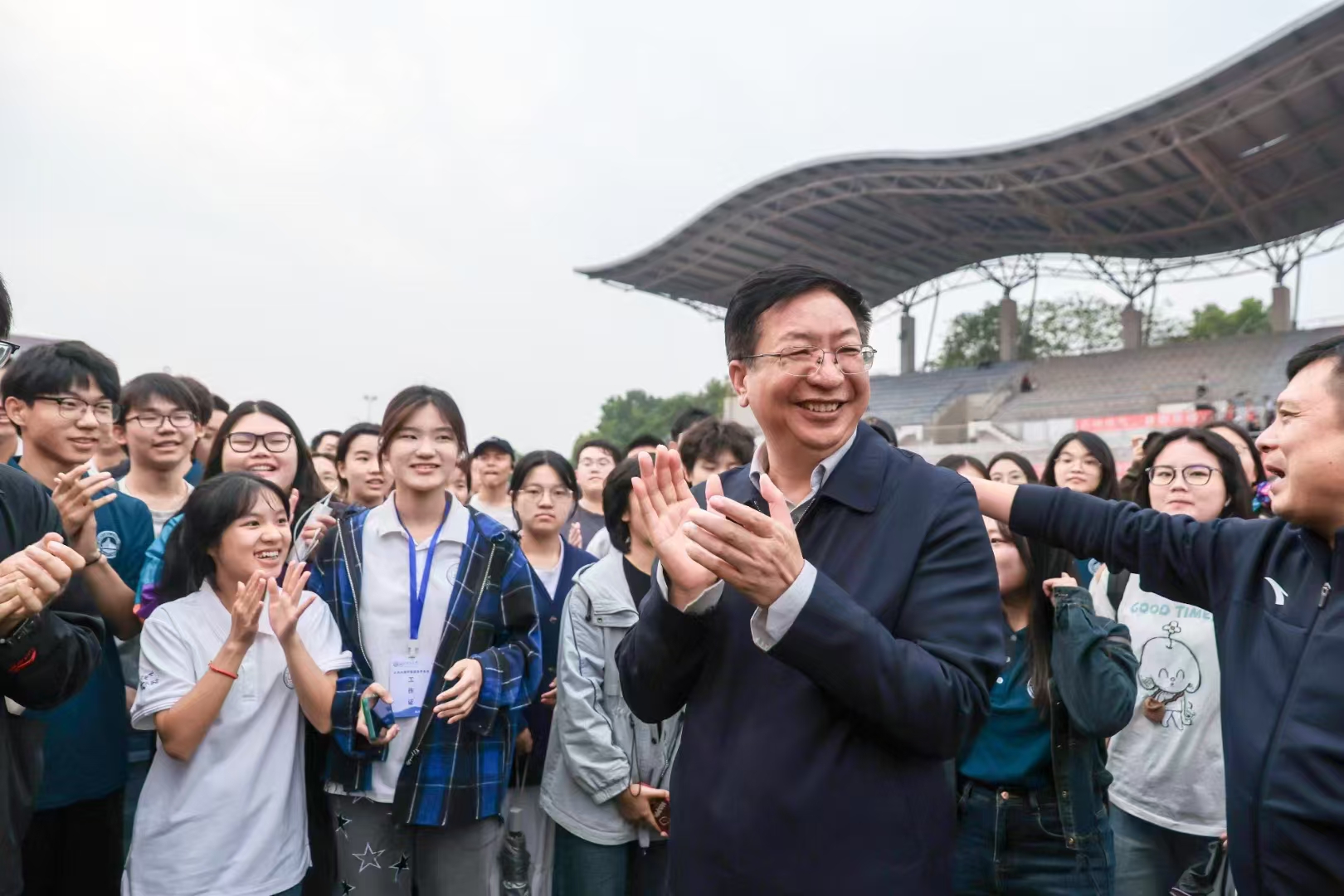 本届运动会共设60个比赛项目,新增了师生拔河、筷运乒乓球等趣味项目,吸引了超过5400名师生运动员同场竞技,参赛人数再创新高。在为期两天的激烈比赛中,学院师生团结一致,奋勇拼搏,屡创佳绩,充分展现了长理土木人勇于拼搏、团结协作的精神风貌。校党委书记付宏渊在与学院师生合影时,称赞地说道:“土木学院,让人羡艳!”