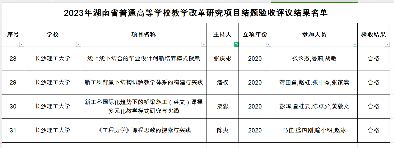 关于公布2023年湖南省普通高等学校教学改革研究项目结题验收结果的通知