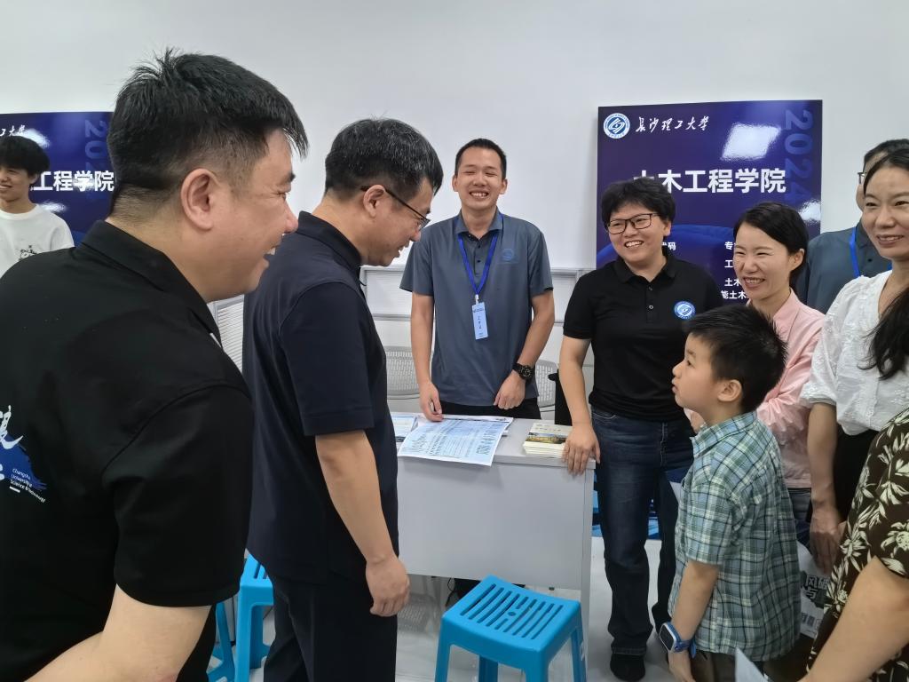 在“校园开放日”活动中,学院党委副书记黄阿明从学校“1+2”学科发展规划,学院师资力量、人才培养模式、科创竞赛成绩、历年保研考研数据、高质量就业等方面,积极耐心地迎接考生和家长的咨询与提问,并向家长们介绍了学院本科生连续九届获全国大学生结构设计竞赛一等奖(含三届全国总冠军)的骄人成绩。