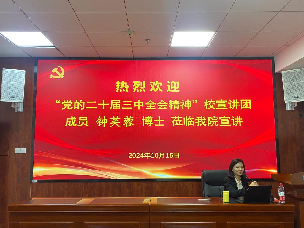 10月15日下午,体育学院学习贯彻党的二十届三中全会精神报告会在云塘校区体育馆304学术报告厅举行。校党委理论宣讲团成员钟芙蓉作宣讲报告。院党总支书记李龙主持报告会。学院全体党员、教授委员会成员、中层干部、青年教师、研究生共计70余人参会。