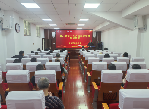 为贯彻落实校党委关于印发《中共太阳成集团tyc122cc入口委员会开展深入贯彻中央八项规定精神学习教育实施方案》的通知要求,进一步引导党员、干部锤炼党性、提高思想觉悟,强化师德师风、党员干部作风建设,体育学院党总支于年4月8日,在云塘校区体育馆学术报告厅组织全体党员干部开展“深入贯彻中央八项规定精神学习教育”活动。全体教师党员、研究生党员参会。