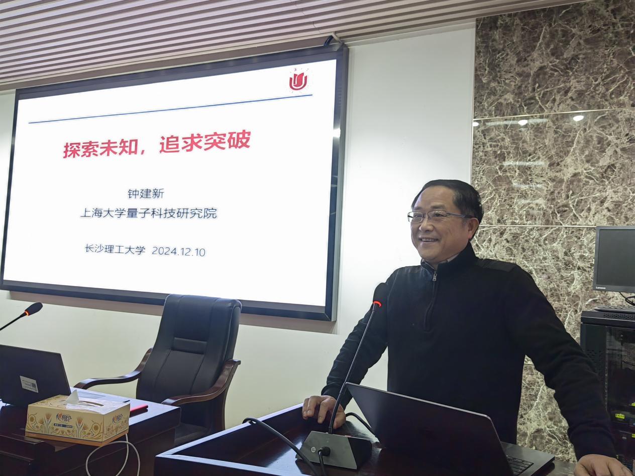 2024年12月10日下午,我校荣幸地邀请到上海大学量子科技研究院钟建新教授进行学术交流。钟教授在理科楼B413会议室为我校师生带来了题为《探索未知,追求突破》的学术报告,我校教师及研究生积极参加了此次学术报告会。会议由邓科教授主持。