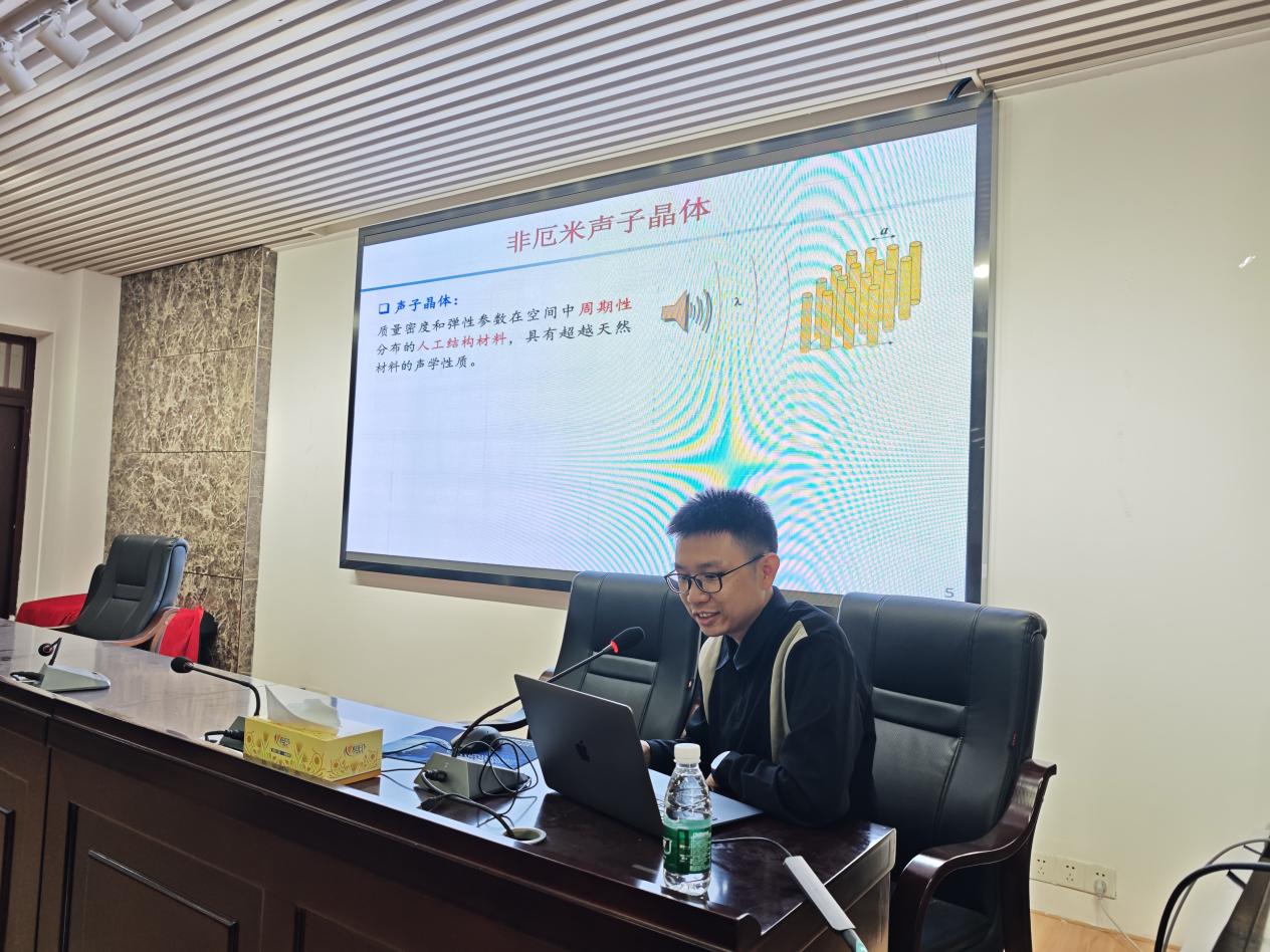 2025年4月25日下午,武汉大学邓伟胤教授应邀来我校交流指导,在理科楼B311会议室作了题为《声子晶体中的非厄米趋肤效应》的学术报告。我院五十余名师生积极参加了此次学术报告会,会议由邓科教授主持。