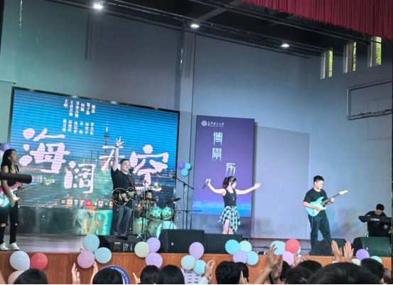文艺表演环节更是将典礼氛围推向高潮。毕业生们用才艺展示着青春的风采与力量:大合唱《凤凰花开的路口》,饱含着对往昔岁月的眷恋与对未来的憧憬,同学们的歌声里带着淡淡的忧伤与坚定的信念;舞蹈《Bubble》节奏动感,舞者们活力四射,瞬间点燃现场气氛;中国舞《入画江南》则以水墨般的意境,将离别之情演绎得诗意满满。毕业生辅导员赵俊程老师带领的单片机乐队压轴登场,一曲《海阔天空》,将全场氛围烘托得温馨而热烈,也象征着毕业生们即将勇敢地奔赴广阔天地,追逐自己的梦想。