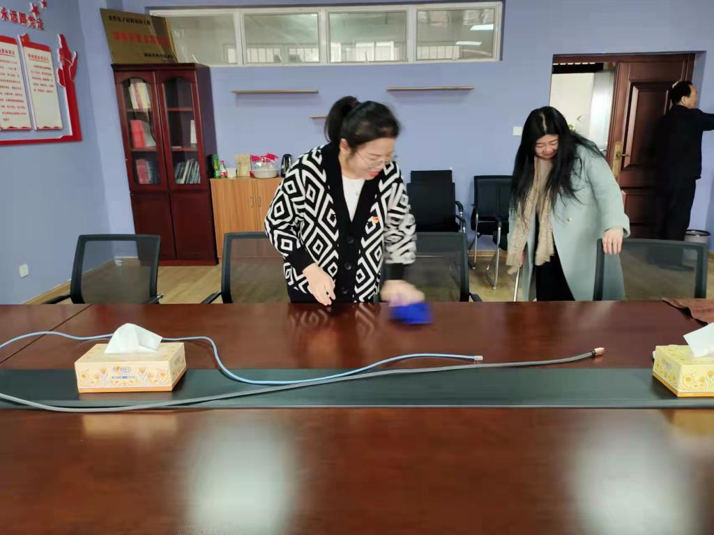理科楼五楼是学院行政和各系的办公场所,在西边当头设置有教工之家活动室,里面还装有供老师和同学引用开水的饮水机。在专题学习结束后,大家从各自办公室拿出扫把、拖把、抹布、水桶,在C511教工之家、健身活动室开展了大扫除。老党员专职组织员陈光明同志身先士卒,俯下身子擦拭着一件件健身器材和办公家具,党办主任许孟良同志蹲下身去拔掉东头阳台上的一颗颗杂草,党委副书记宋国宁同志带领女党员把C511教工之家打扫的干干净净,院办主任张冬同志把饮水机擦得锃亮。年轻党员更是不怕苦不怕累,承担了扫地、拖地的重任。经过大家的齐心合力,五楼的环境变得更加干净明亮。