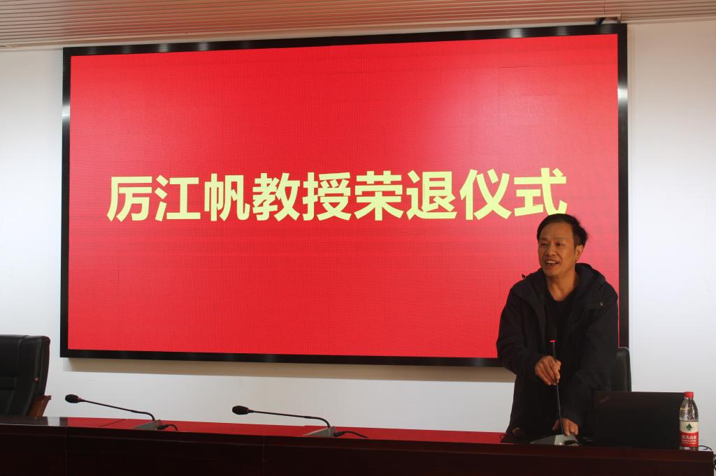 最后,党委书记张国强代表全院师生向厉江帆教授的荣退送达了诚挚的祝福。他与老师们分享了厉江帆教授求学、教学、科研等各个方面成就和事迹,特别对厉教授为年青一代“传帮带”的“务实、创新、团结、奉献”的精神给予了高度肯定。他说,厉教授是个乐于奉献、敢说敢做、正直无私,值得信任的好老师,他希望年轻老师多向厉老师学习并传承优良传统,敢想敢干、埋头苦干、真抓实干,将学院各项事业推向更高一层。
