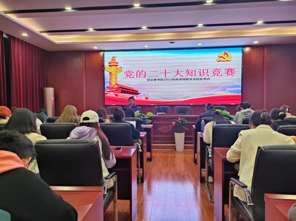 为深入落实并贯彻落实党的二十大精神,积极探索“互联网+党建”的新模式,进一步提升预备党员的理论知识能力水平,11月16日19时10分,“党的二十大知识竞赛暨文新学院2023年秋季预备党员结业考试”于我校金盆岭校区九号教学楼218室成功举行。