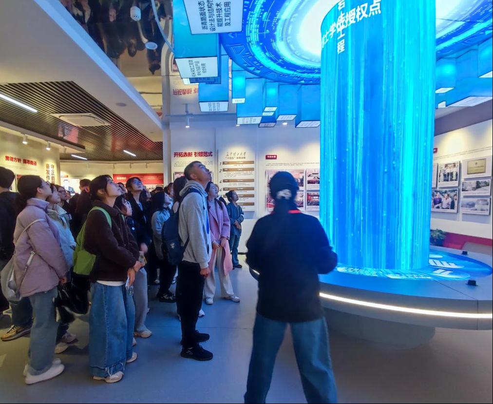 在讲解员的引导下,党校学员们依次沿着基地内所设置的四个篇章路线进行了参观,在“时空穿梭”中全方位地了解了我校与时代同发展、与人民齐奋进的发展历程。在参观过程中,讲解员重点讲述和介绍了展览上涉及的各位优秀长理学生与老师的相关感人事迹,以此来鼓励大家不断努力、追寻榜样,奋发有为、再续辉煌。