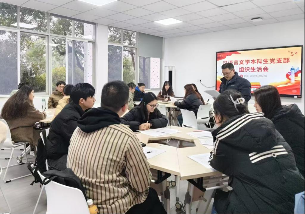 为深入推进政治教育,感悟思想伟力,发挥学生党支部建设引领作用,增强学生党员同志进行自我批评、自我革新、自我完善、自我进步的意识,12月24日,文新学院各学生党支部开展2024年度组织生活会。