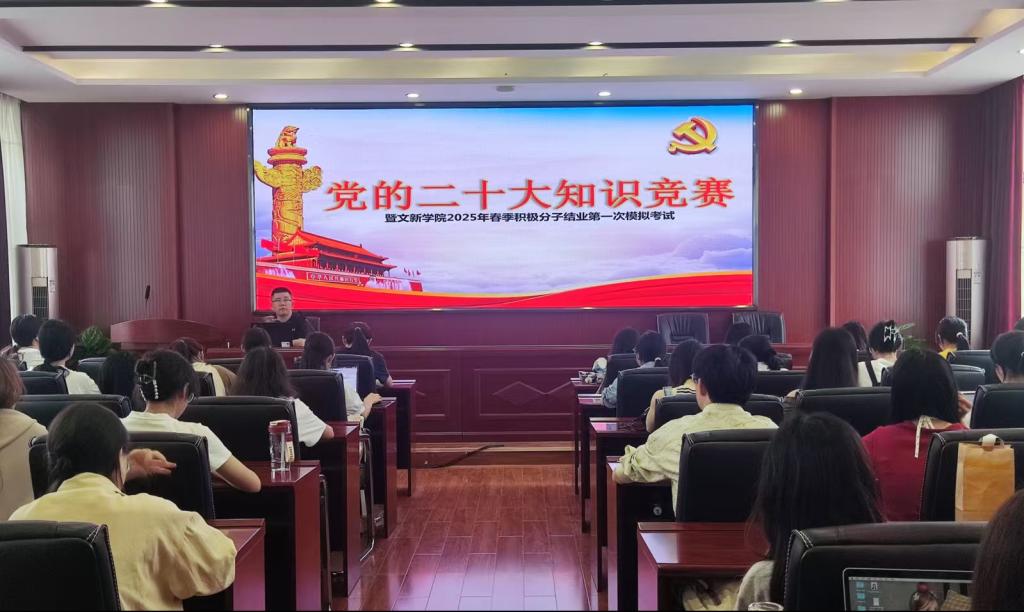 为贯彻落实党的二十大精神,积极探索“党建+互联网”新模式,进一步提升积极分子的理论知识水平,5月16日12时10分,“党的二十大知识竞赛暨文新学院2025年春季积极分子第一次模拟考试”于我校金盆岭校区九号教学楼218、223室成功举行。