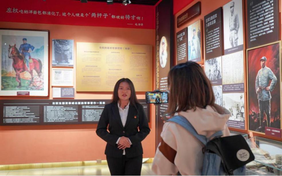 在红色教育基地内,学生们开展分工合作,踊跃地进行着党史视频拍摄任务。学生一组三人为一个拍摄团队,一人负责拍摄,一个负责讲解,一人负责文案校对。每个小组自由选题,以“青年说”的形式,对基地内的红色文化、事件、人物进行讲解和拍摄,现场还有多名学院专业老师给予指导。