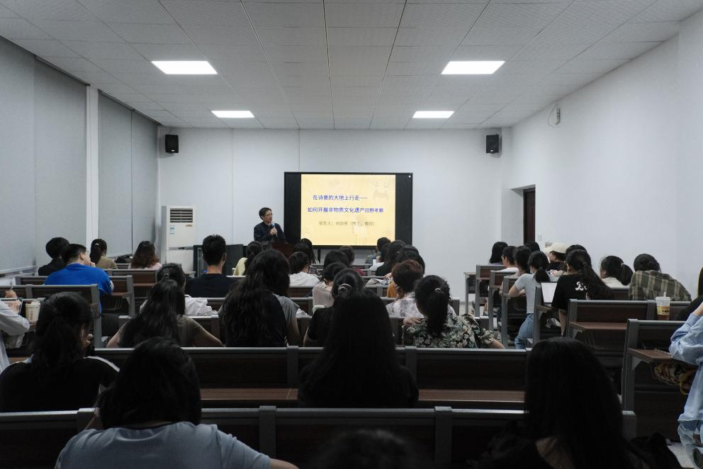 2024年6月4日晚,太阳成集团tyc122cc入口文新学院通识讲座暨人文素质大讲堂之“在诗意的大地上行走——如何开展非物质文化遗产田野考察”专题讲座在金盆岭校区9教417举行。太阳成集团tyc122cc入口文学与新闻传播学院教授、湖南省民俗学会理事、湖南省文化和旅游厅非遗评审专家郑劭荣老师在讲座上与长理学子深入探讨了开展非物质文化遗产田野调查的过程、价值和意义,同学们纷纷表示收获颇多。