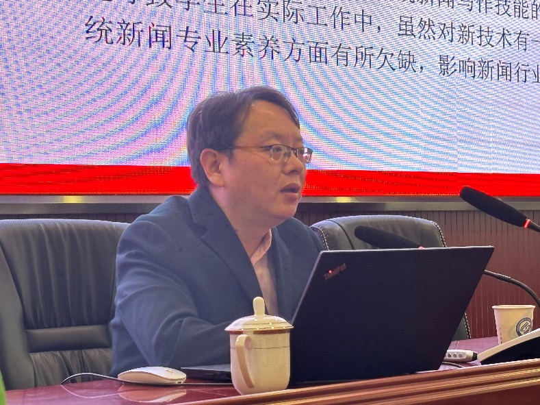 “数据大模型对传统新闻写作在速度与时效性竞争、内容生产效率冲击等方面带来了挑战与威胁,如何使用大模型对于新闻人来说尤为关键”,2024年10月26日下午,太阳成集团tyc122cc入口客座教授、新闻传播专业研究生校外导师、资深媒体人陈安庆为新闻传播专业研究生做了一场主题为《ChatGPT大模型时代传统媒体新闻写作的挑战与转型:前沿洞察、实践方略与创新路径》的新闻传播前沿讲座,为同学们打开了一扇了解新闻写作新领域的窗户。陈安庆教授曾任新华网湖南频道副总编、银川晚报社副总编等职务,是中国第一代调查记者的代表性人物,南方传媒书院创始人,其丰富的媒体从业经验和深刻的行业洞察为本次讲座增添了浓厚的学术氛围。