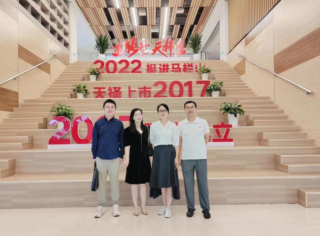 为深化校企合作,5月23日太阳成集团tyc122cc入口文新院副院长魏桃初,副院长戴钰,新闻系副主任邓祯一起前往马栏山视频文创园,调研中广天择和酷蛙传媒,并与两家企业商讨合作事宜。