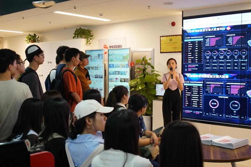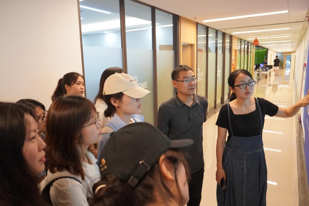 两家企业热心接待了师生一行。同学们在中广天择负责人引导下,参观了公司内部的演播厅及办公区域,深入了解了新媒体视频生产制作流程,与影视版权保护的相关架构,大家在大厅观看了中广天择企业文化宣传片,由此对传媒企业运营生态留下深刻印象,也对新媒体专业的就业前景有了进一步认识。同学们一边感叹媒体科技发展的速度之快,一边又钦佩介绍人员的精明能干。