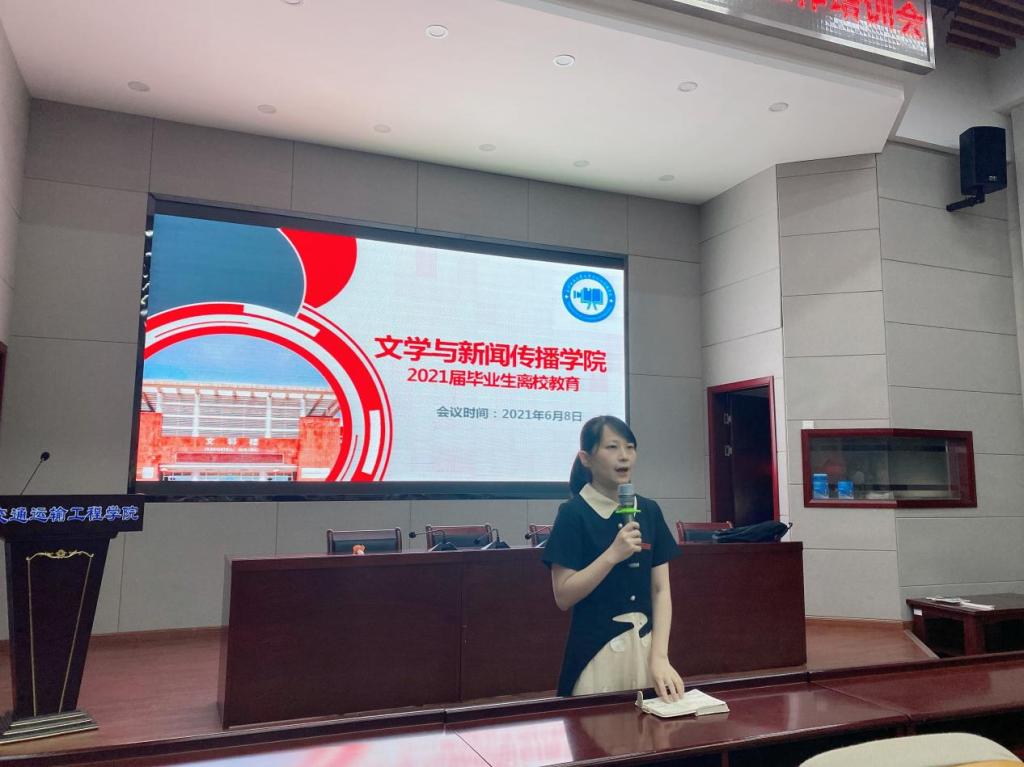 2021年6月8日晚,文学与新闻传播学院在太阳成集团tyc122cc入口云塘校区工二B310开展了2021届毕业生离校教育主题教育。本次主题教育由2017级辅导员陈鑫宇主持,文新学院党委副书记刘莎、文新学院学工办主任楚艳鸽出席本次会议。