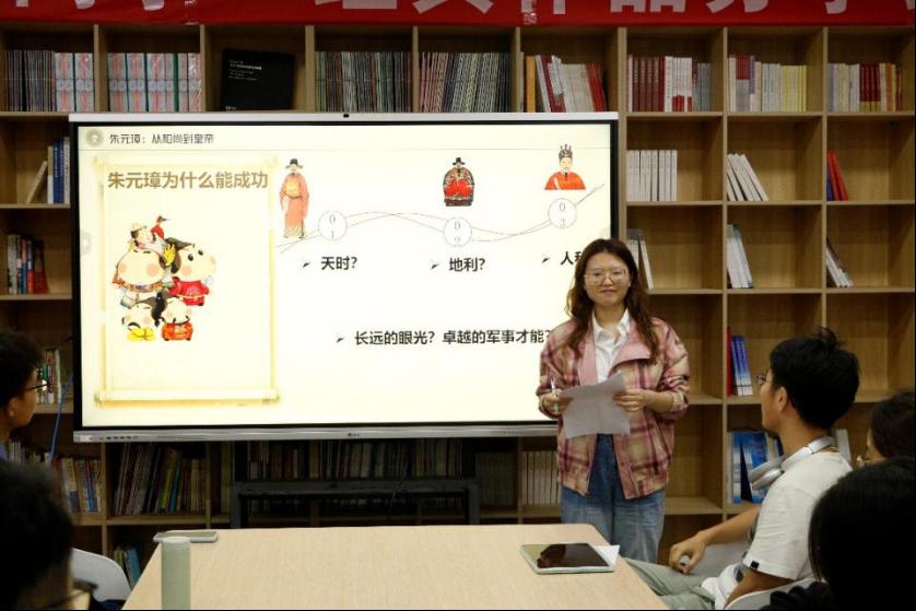 在互动环节,于涛荣同学从明史料出发,阐述了“擅识人善用人”是朱元璋成功的关键因素。王浩辰同学用朱祁镇“土木堡之变”引申了需多角度分析历史人物的观点。其它同学也结合相应史料踊跃发言。