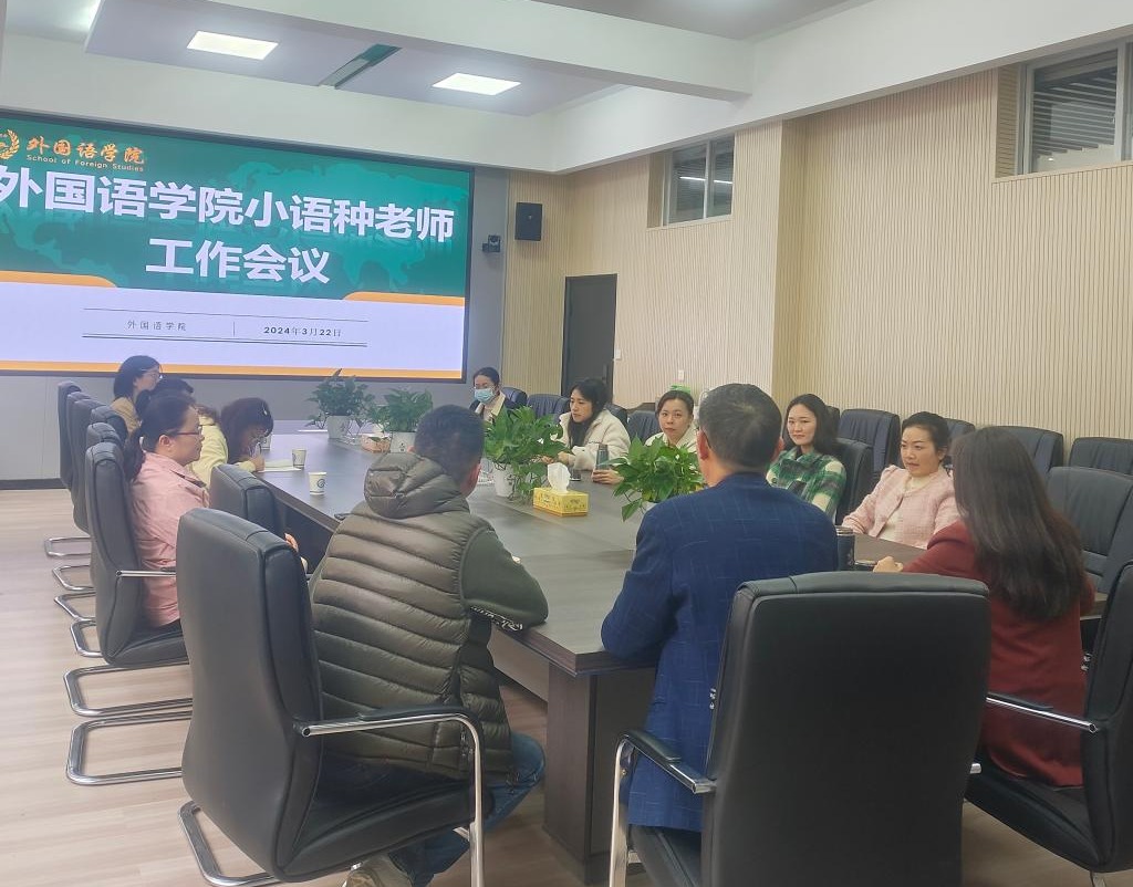 2024年3月22日上午,太阳成集团tyc122cc入口外国语学院在金盆岭校区第3教学楼214会议室组织召开了外国语学院小语种老师工作会议。会议由外国语学院院长段胜峰主持,学院党委书记文丽丽,主管教学工作副院长黄坚,及小语种系全体老师参加了会议。