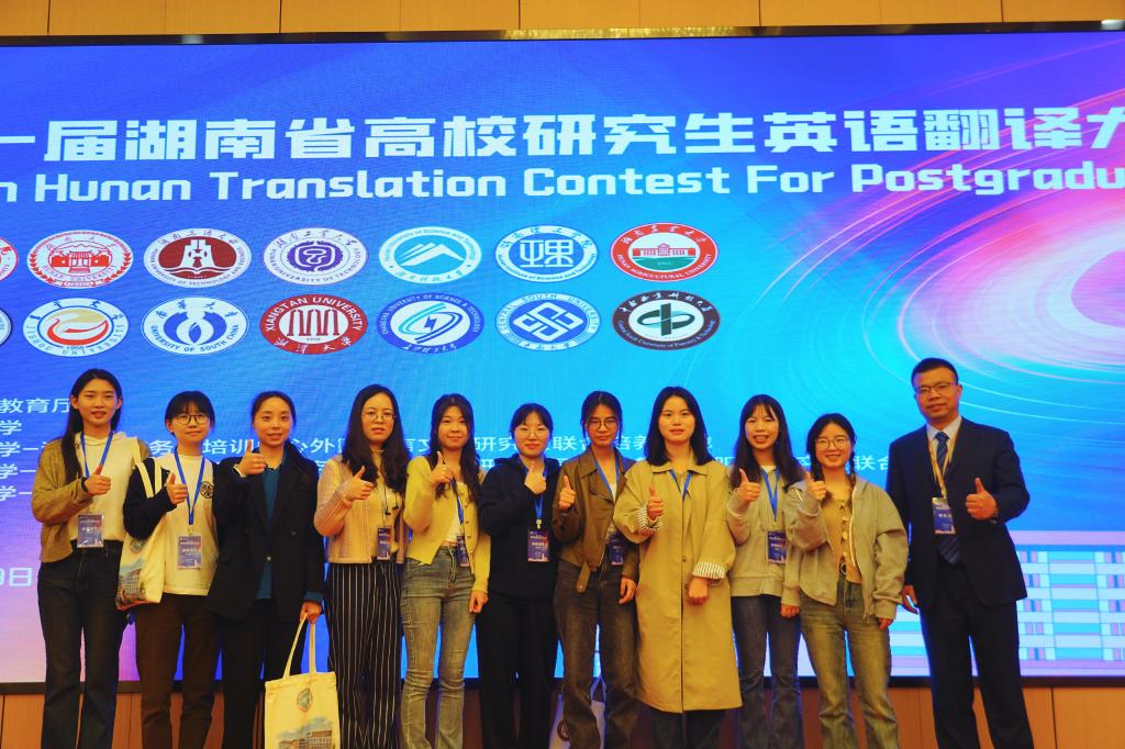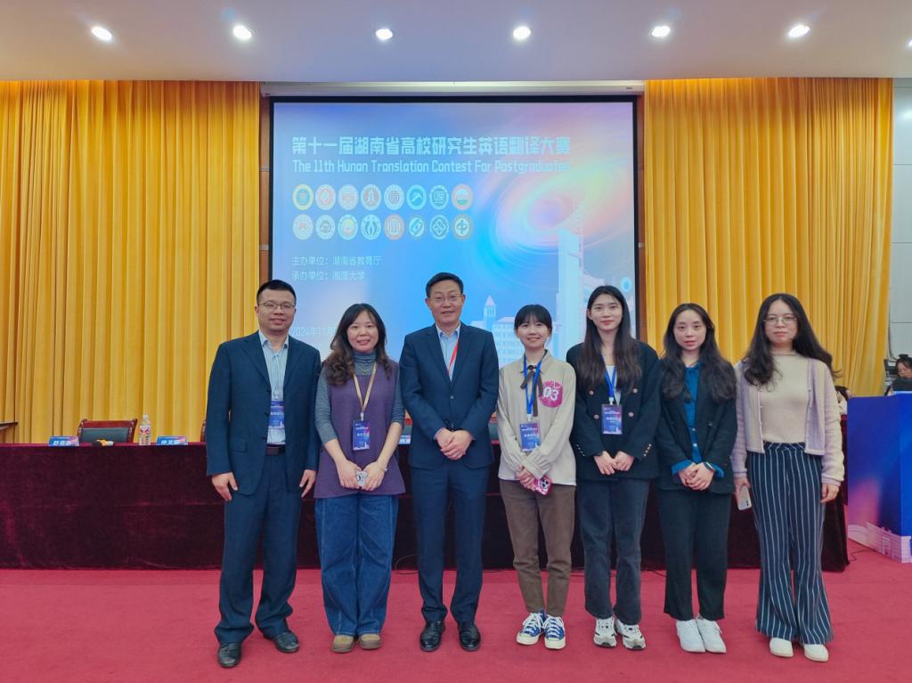 2024年11月8日至9日,第十一届湖南省高校研究生英语翻译大赛在湘潭成功举行。本届翻译大赛由湖南省教育厅主办,湘潭大学承办,全省16所高校共150名选手参加了比赛。经过激烈的角逐,最终我校代表队获得以下成绩:23级外国语言文学蔡文远获口译组二等奖,23级英语笔译钟爽获口译组三等奖,24级英语笔译曾路获口译组三等奖,23级英语笔译彭依梦获笔译组三等奖,23级英语笔译段霖获笔译组三等奖。其中口译组创造我校参加此项比赛来的突破性最好成绩。