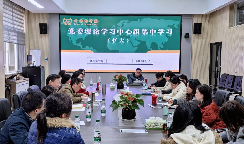 段胜峰结合学习内容,进一步分析了学院建设发展的重点任务和深化改革的重点方向,提出了2025年度需抓紧推进的重点工作。他指出,要以修订新一版本科人才培养方案为契机,全面梳理论证专业人才培养,推动课程、教材、课堂管理和实践教学等全流程优化提质;要根据新形势新任务和学校的新要求优化调整部分机构和制度,提升管理效能;要进一步强化“有组织的科研”,落实“应报尽报”,加大学术交流力度,实现国家级科研项目稳中有升;要进一步增强教师立德树人责任感,抓好师资培训,加强课堂管理,提高教学质量;要适应学校“双主体”发展要求,全面提高研究生和本科生公共外语教学质量,扩大多元优质语言教学供给。