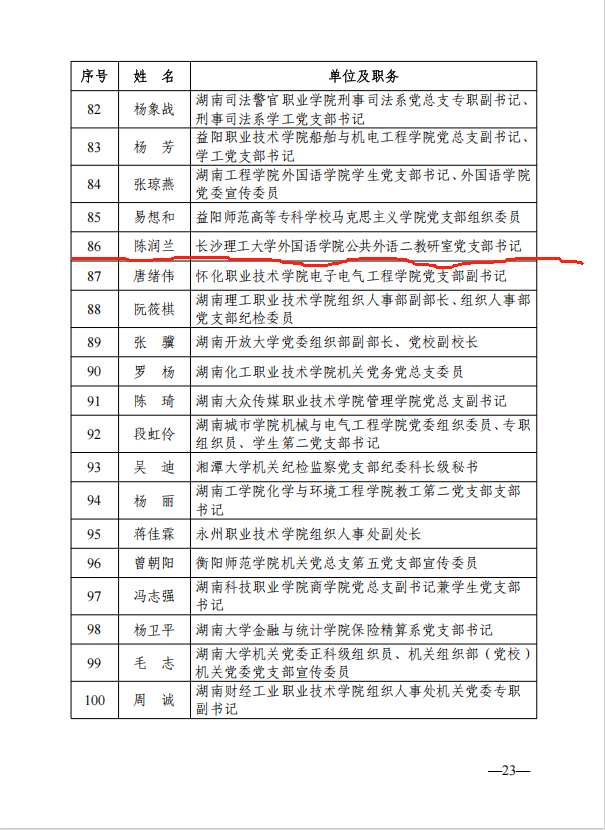 近日,省委教育工委公布全省高校党组织“对标争先”建设计划第四批项目评选结果,我院公共外语二教研室党支部书记陈润兰荣获全省高校党建工作“党务工作示范岗”称号,学院喜获佳绩。