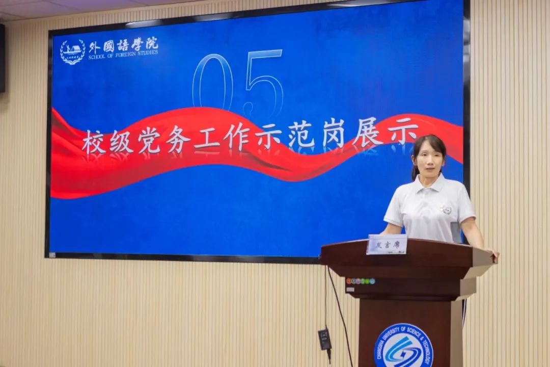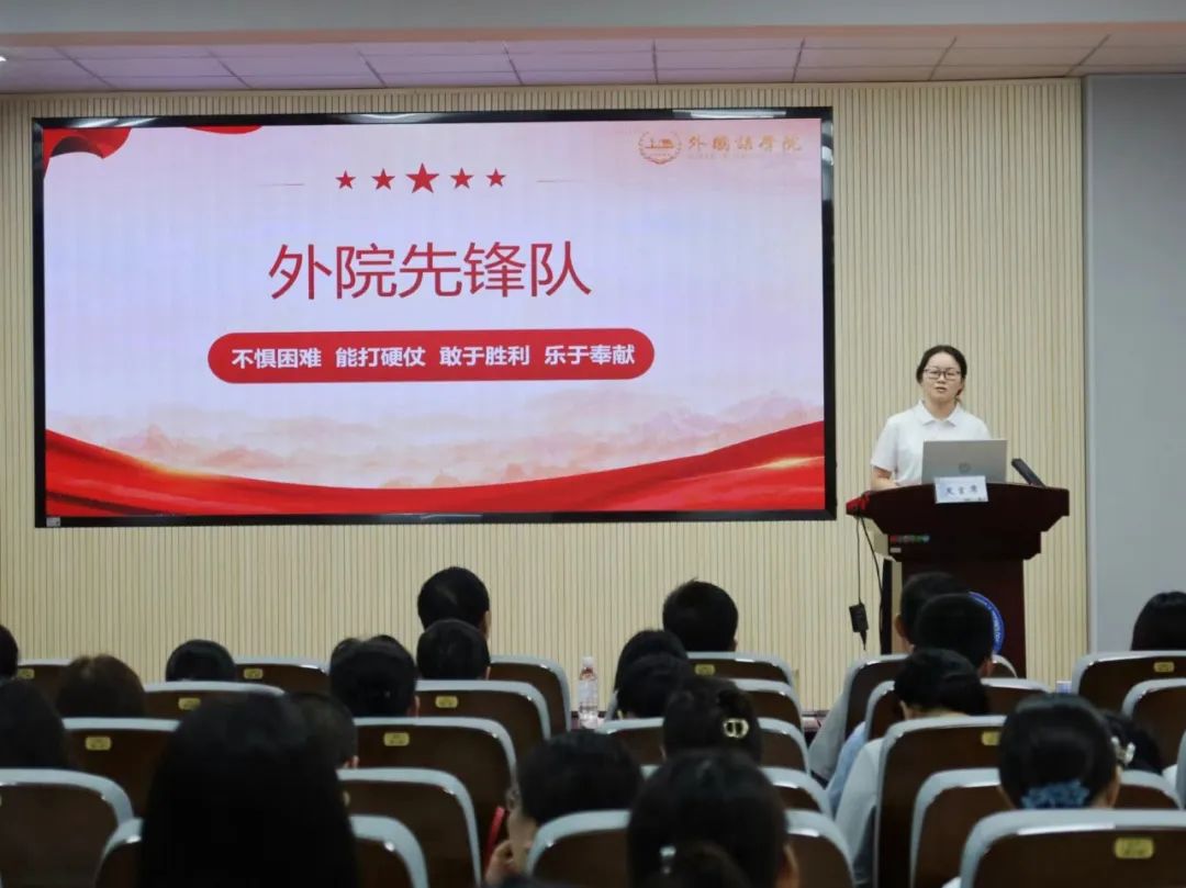 学院党委书记文丽丽作“外院先锋队”工作汇报。她回顾了“外院先锋队”的发展历程和工作成效,充分肯定了“外院先锋队”是一支不惧困难、能打硬仗、敢于胜利、乐于奉献的队伍。