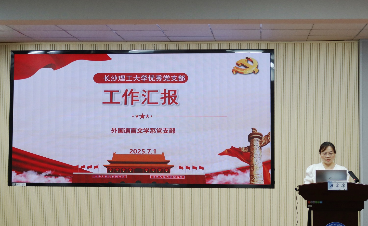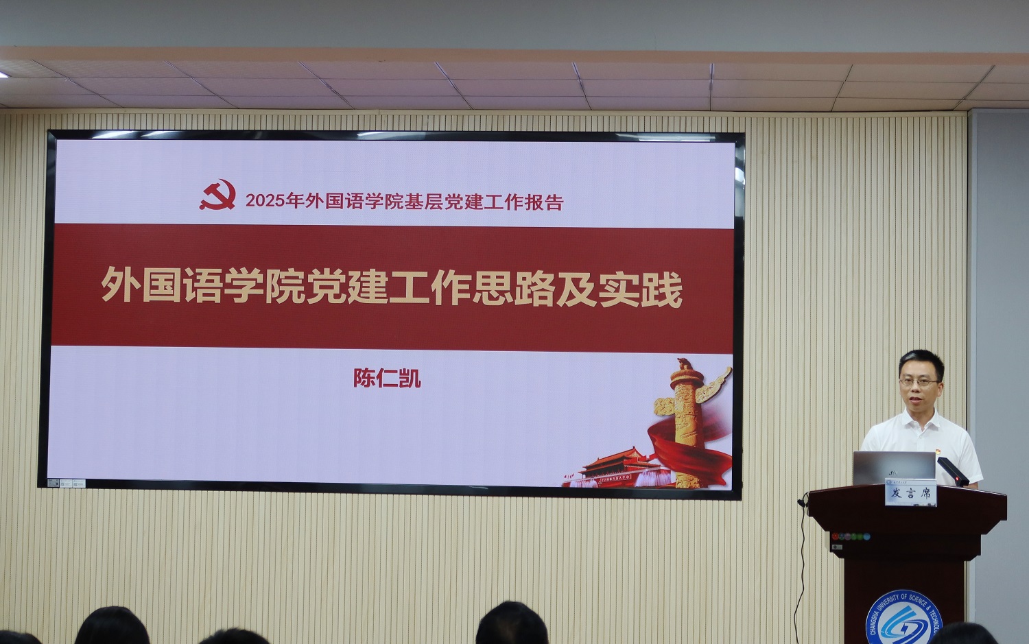 外国语言文学党支部书记罗娟汇报了党支部近年来的建设成果。外国语言文学党支部推进党建与教学、科研和育人工作深度融合,团结带领党员教师紧跟学院党委步伐,以自我革命的勇气,推动了和正在推动着英语专业教学改革和人才培养工作,赢得了全场的阵阵掌声。