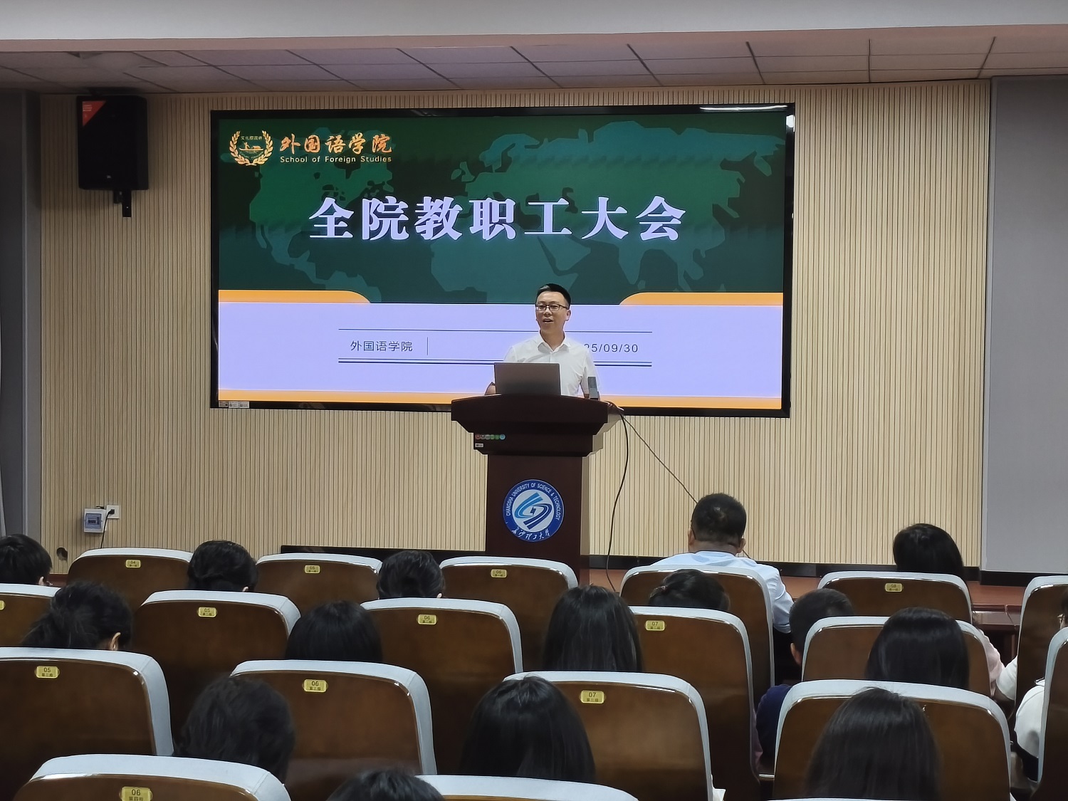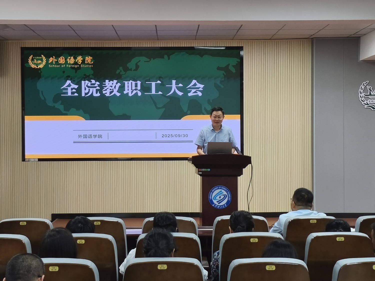 2025年9月30日下午,学院召开全院教职工大会,主要部署职称申报、岗位晋级和廉政建设等工作。学院党委书记陈仁凯主持会议。