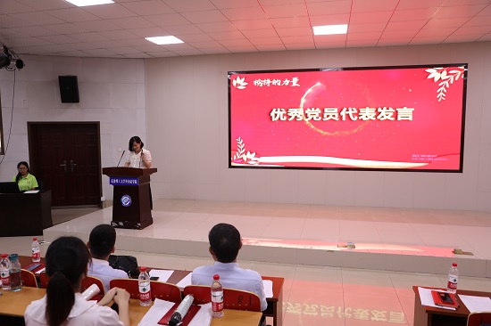 优秀党员代表李巍、王浩萍、王爱华、 陈熠等四人先后发言,汇报了个人先进事迹,赢得了阵阵掌声。