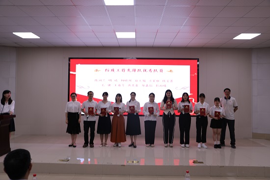 院党委书记文丽丽、院长段胜峰、副院长武俊辉、副院长季红琴、副院长姚尧、院党委委员柳晓辉、院兼职组织员张建军为获奖优秀个人和先进集体颁发荣誉证书和文创雨伞。