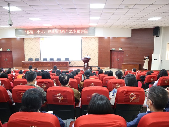 10月11日下午,外国语学院邀请湖南省教育工委党校常务副校长\省高校干部培训中心主任刘国华教授作“喜迎党的二十大,奋进新征程”的专题讲座。学院党委书记文丽丽主持,全院教职工和学院第十三期青马班学员200余人参会。