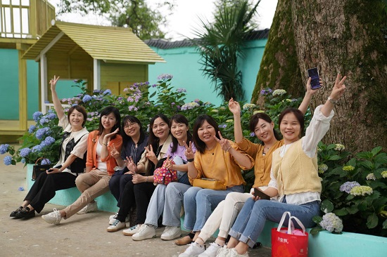 经过一个半小时的车程,教师们来到摄影地点,暂时忘却了雨雾弥漫的都市。大家徜徉在山水间、田埂上、栈道旁、欢声笑语中、赏花、采茶、摄影、逗乐、种植,与大自然近距离接触,度过了美好的一天。