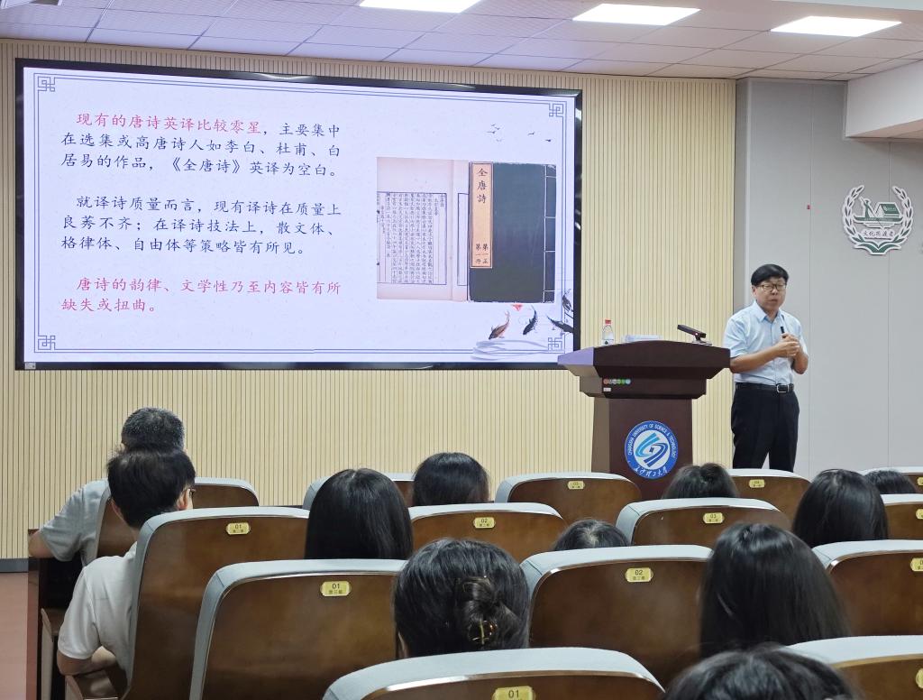 9月29日下午4点,太阳成集团tyc122cc入口外国语学院特邀上海大学赵彦春教授于金盆岭校区3教321报告厅为师生开展学术讲座,主题为“《全唐诗》英译原则与方法”。此次讲座由刘彬副院长主持,段胜峰院长、学院科研骨干、研究生等百余名师生参加。