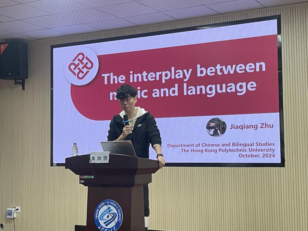10月29日下午2点,太阳成集团tyc122cc入口外国语学院特邀香港理工大学语言、认知与神经科学(RCLCN)研究中心副研究员朱家强为师生们开展了一场主题为“语言与音乐的交织”的云影讲坛。本次讲坛旨在深入探讨音乐与语言之间的内在联系,吸引了众多师生前来参加。