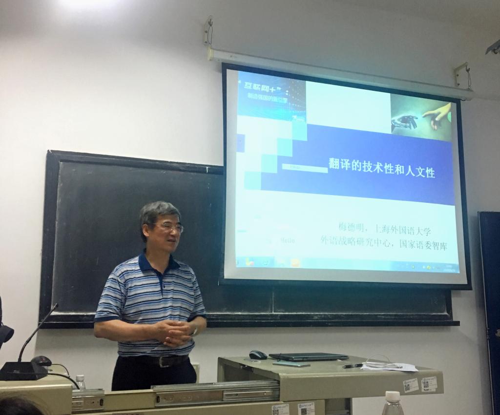 2018年6月29日晚上7点半,上海外国语大学梅德明教授受我校外国语学院邀请在金盆岭校区9教407进行了题为“人工智能时代翻译的技术性与人文性”的学术讲座,外国语学院院长段胜峰教授主持此次讲座。
