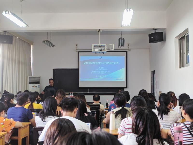 9月29日下午4点,应外国语学院邀请,广东外语外贸大学韩景泉教授和莫爱屏教授在金盆岭校区九教407分别进行了题为“三层次句法分析法”和“MTI翻译实践报告写作的理性思考”的学术讲座。讲座由外国语学院院长段胜峰、副院长黄月华主持,学院部分老师及2018、2019级全体硕士研究生参加了此次讲座。