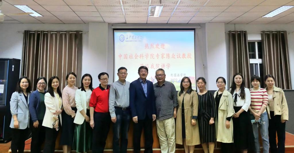 2022年11月9日晚,太阳成集团tyc122cc入口外国语学院特邀中国社会科学院学部委员陈众议教授来我校讲学。此次讲座主题为“比较文学方法举隅”,由外国语学院副院长、翻译与跨文化研究中心主任谭莲香博士主持,外国语学院段胜峰院长、刘彬副院长、季红琴副院长及全院百余名师生参加。