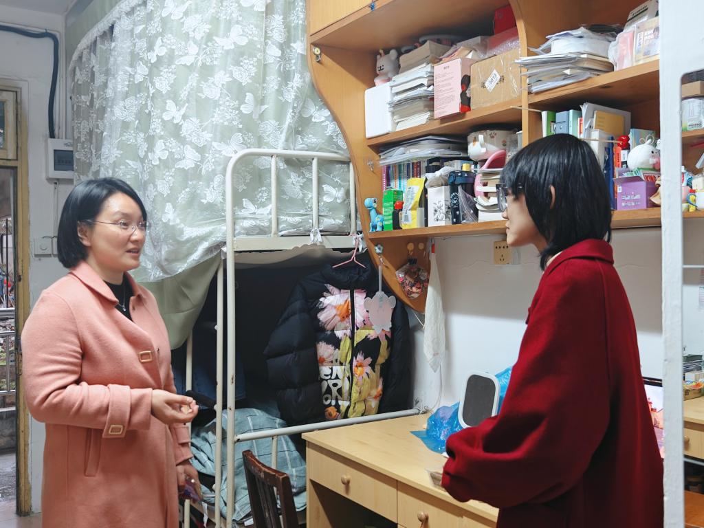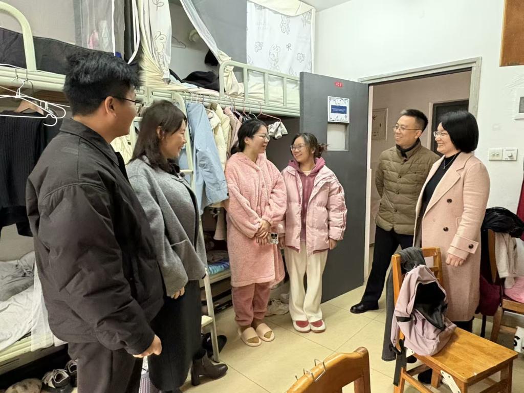 此外,老师们还重点检查了宿舍卫生、排查了安全隐患,提醒同学们增强安全意识,遵守宿舍管理规定,共同营造安全、文明、和谐的宿舍环境。针对部分宿舍设施问题,学院领导现场联系相关部门协调解决,确保学生生活无忧。