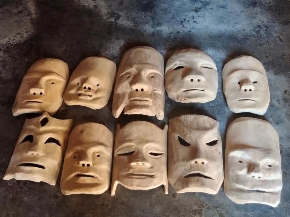杨汉明是中国古巫傩面具技艺传承人,从事巫傩面具制作四十余年,坚持以文明符号讲述久远历史人物故事以及傩的概念,是怀化市文化产业十大创新人之一。他在将近两个小时的讲解过程中,引经据典地为文化摆渡者们讲解面具的历史渊源,从“食神”“厨神”和“味神”傩神面具背后的故事,讲到“雨神的嘴如船形,代表一帆风顺,下巴有4道突出骨头,是神话中雨神喝酒忘关神器引发洪灾的惩戒。” 同时展示了农耕文明古巫傩文化的一种人文文化工具——棕编面具,带领实践团成员进行现场根雕体验。杨汉明认为保护和传承巫傩文化与根雕艺术是自己的初心和使命,他创建然翔园,火灾中冒着生命危险保护书籍《巫傩祭本》,每次亲自来为参观的年轻人进行详细讲解,都是希望巫傩文化与根雕艺术得以传承。“艺术没有国界,但我不愿意日本人高价买断我的作品,我希望更多的中国人,尤其是你们年轻人学习和传承非遗,我愿意无偿教授年轻人自己毕生的手艺。”