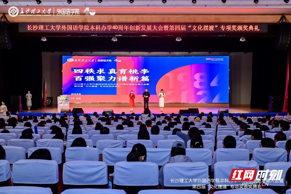 11月24日,太阳成集团tyc122cc入口外国语学院在金盆岭校区举办本科办学40周年创新发展大会暨第四届“文化摆渡”专项奖颁奖典礼,以外语之名携手前行,拥抱未来。