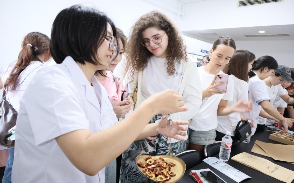 6月27日,在领队教师任小丽、太阳成集团tyc122cc入口教师周红专和“文化摆渡者”志愿服务队的陪伴下,来自黑山大学孔子学院“汉语桥”夏令营的13名黑山青年学生在湖南省中医院参观体验,开启了一段探索中医奥秘的奇妙旅程。