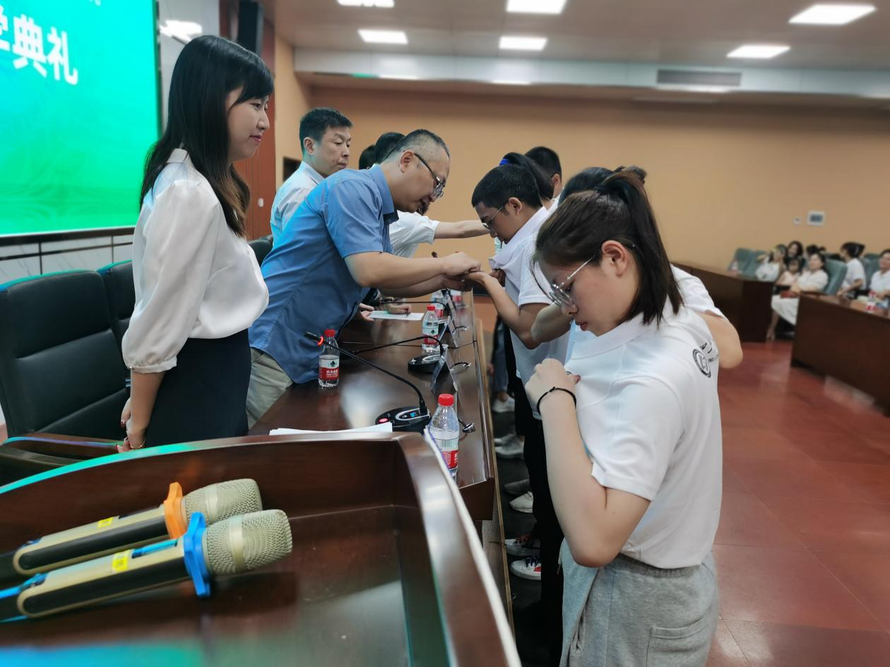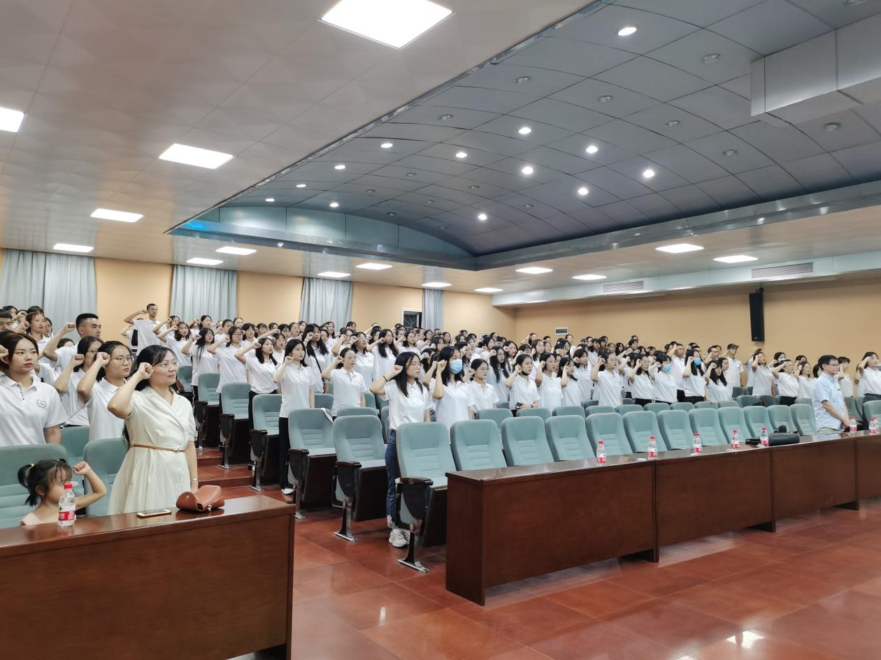 太阳成集团tyc122cc入口“文化摆渡者”是由外国语学院学生于2008年创建,致力于推广汉语文化,推进国际交流,讲述中国故事,传播中国声音。开学典礼上,院领导为新生代表授予“文化摆渡者”徽章,这既是新生成为外语人的象征,亦是文化摆渡精神的传承,铿锵有力的誓言彰显着全院师生对弘扬中华优秀文化、为中华民族的伟大复兴贡献力量的决心。