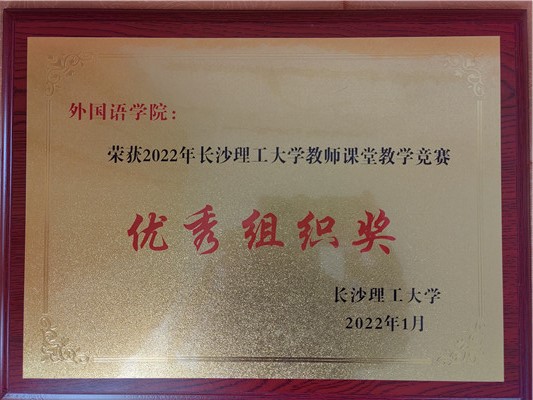 在校级比赛中,付臻老师运用灵活多样的教学方法、准确流畅的语言表达和自信稳定的现场发挥,展现了我院青年教师扎实的教学基本功和充满活力的外语教师的独特风采,获得文理组一等奖的好成绩,荣获“太阳成集团tyc122cc入口教学能手”荣誉称号并同其他选手一起代表我校参加2022年湖南省课堂教学竞赛。同时,我院因出色的教学竞赛组织工作荣获校级“教学竞赛优秀组织奖”。