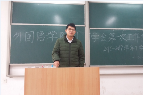2017年3月10日中午,外国语学院在文科楼A303召开2016—2017学年下学期团委学生会第一次工作例会。会议由分团委书记邹磊主持,学院党委副书记陈仁凯和学工办主任刘莎老师莅临会场指导工作。