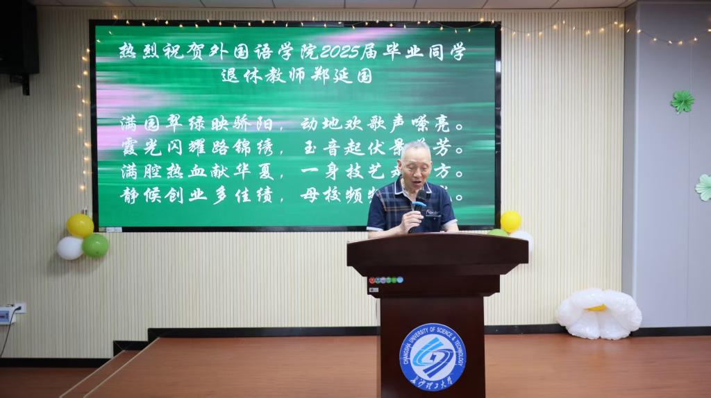 第一篇章“风来相逢时”温情开启晚会。王嘉纬等同学献上《想去海边》、《唯一》歌曲串烧,用优美的旋律引领毕业生们缓缓开封回忆信笺。段胜峰院长在致辞中,勉励毕业生们要“眼里有光,心中有爱”,希望全体毕业生“以语言为翼、以文化为根、以梦想为帆”,勇敢奔赴人生的星辰大海!温情时刻,退休老领导郑延国教授惊喜上台,以原创诗歌给毕业生们送上了暖暖的祝福。篇章尾声,第一轮幸运抽奖为现场增添欢乐氛围。