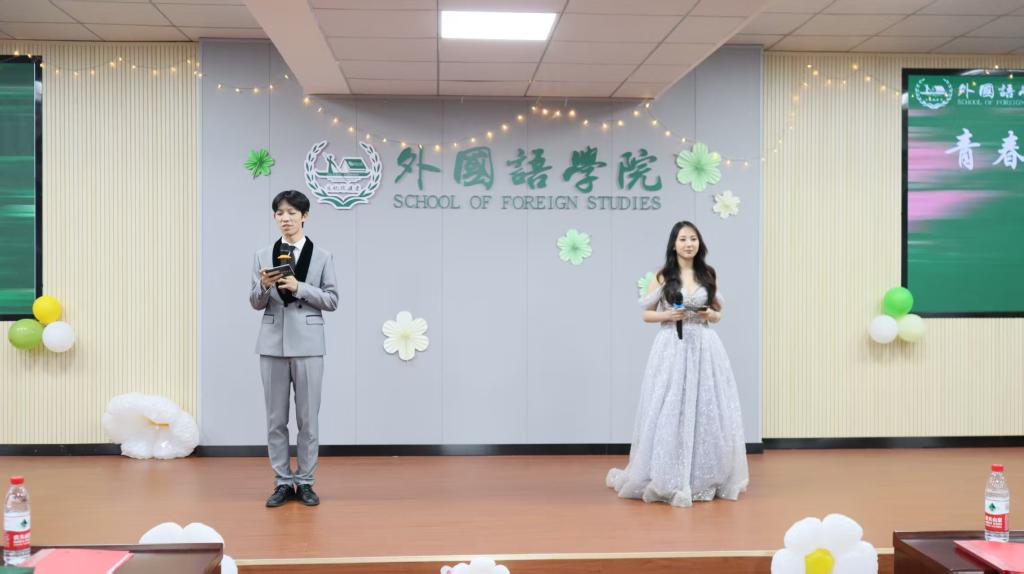 6月18日晚,外国语学院“青春不散场,星帆向未来”2025届毕业晚会在三教321报告厅隆重举行。学院党委书记陈仁凯、院长段胜峰、党委副书记周芳、副院长姚尧、党委委员陈菁、冯春、张志武、专业教师、毕业班班主任、学工办全体辅导员,特邀嘉宾郑延国教授、陈建生教授以及全体毕业生共同出席,晚会共分为“风来相逢时、星耀逐梦夜、帆起远行日”三个篇章,2021级本科毕业生曹晶晶级2024级本科生刘鑫担任主持。