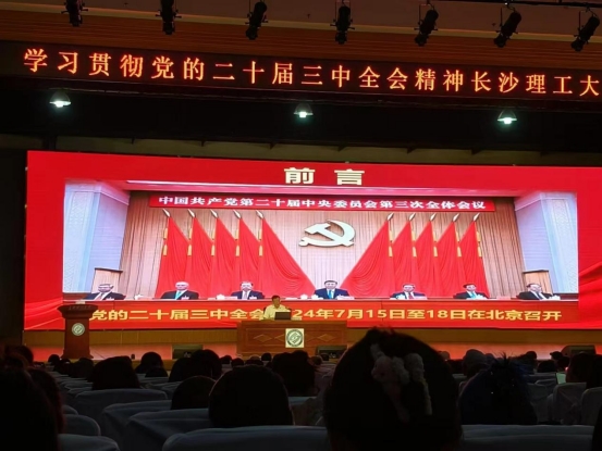 2024年9月20日上午,学习贯彻党的二十届三中全会精神太阳成集团tyc122cc入口宣讲团首场报告会在金盆岭校区大礼堂举行。本次报告会由省委宣讲团成员、校党委书记付宏渊作首场宣讲报告,校党委副书记方琼主持报告会。外国语学院响应学校号召,组织学院全体教师、学生党员及骨干积极参与。