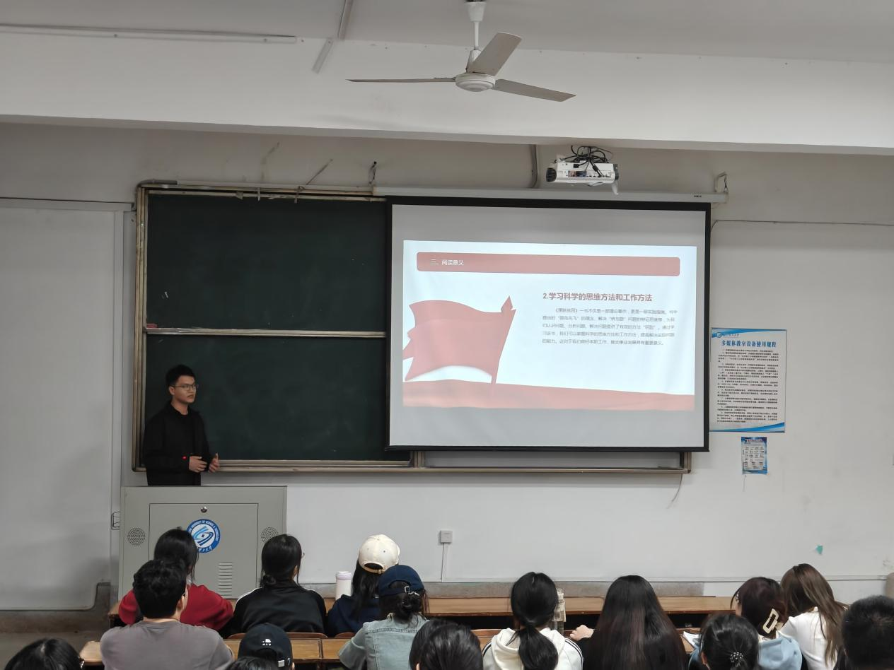 11月12日下午,外国语学院分党校于金盆岭校区3教218开展“读原著·学原文”读书分享大赛,本次比赛由研究生第一党支部党员龙晴云主持,外国语学院分党校第44期入党积极分子培训班、第21期发展对象培训班以及第30期预备党员培训班全体学员参加。